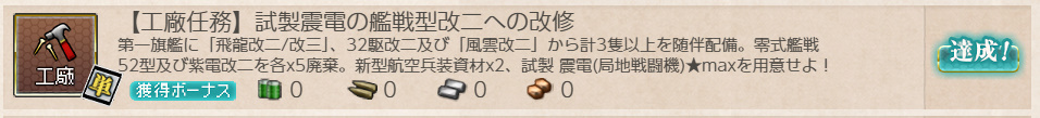 艦これ 任務「【工廠任務】試製震電の艦戦型改二への改修」【工廠/単発】