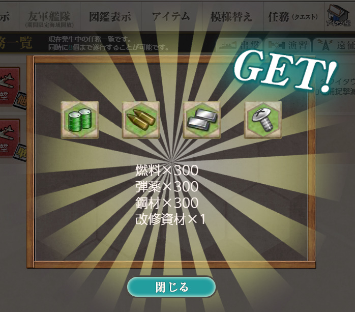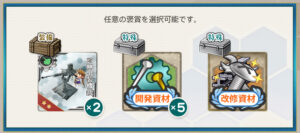 - 25mm単装機銃×2 or 開発資材×5 or 改修資材×1