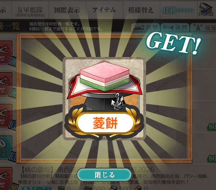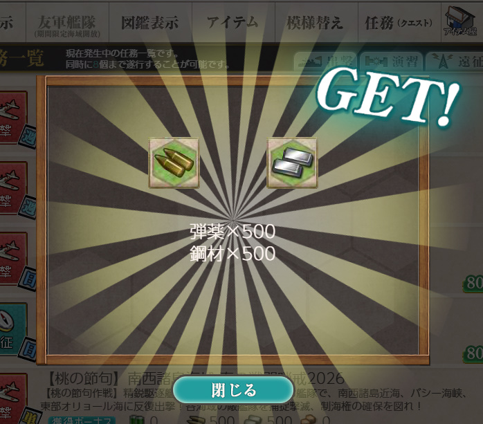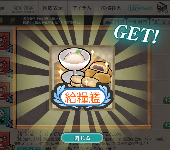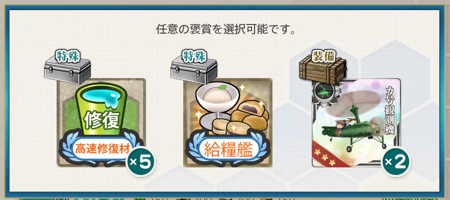 - 高速修復材×5 or 給糧艦「間宮」×1 or カ号観測機×2