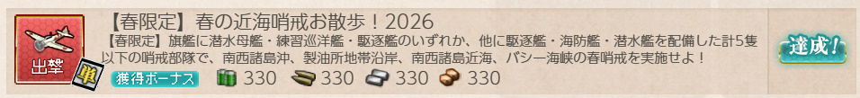 艦これ 任務 「【春限定】春の近海哨戒お散歩!2026」【期間限定/出撃/単発】