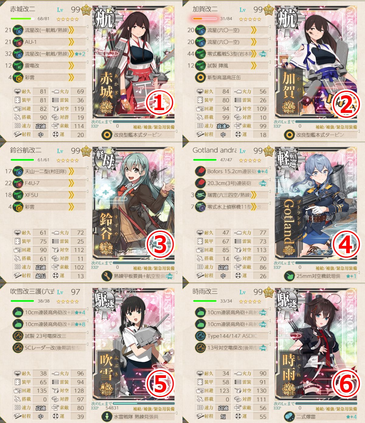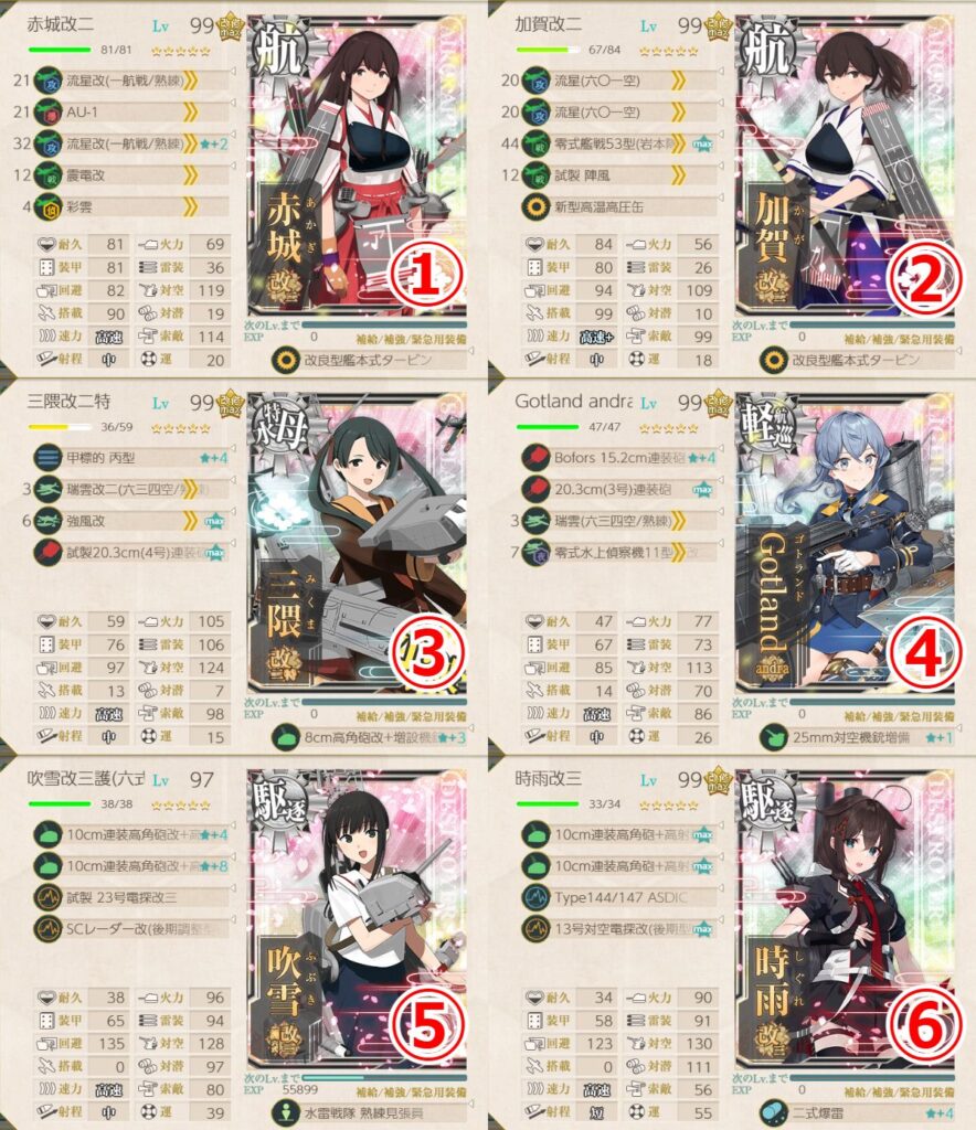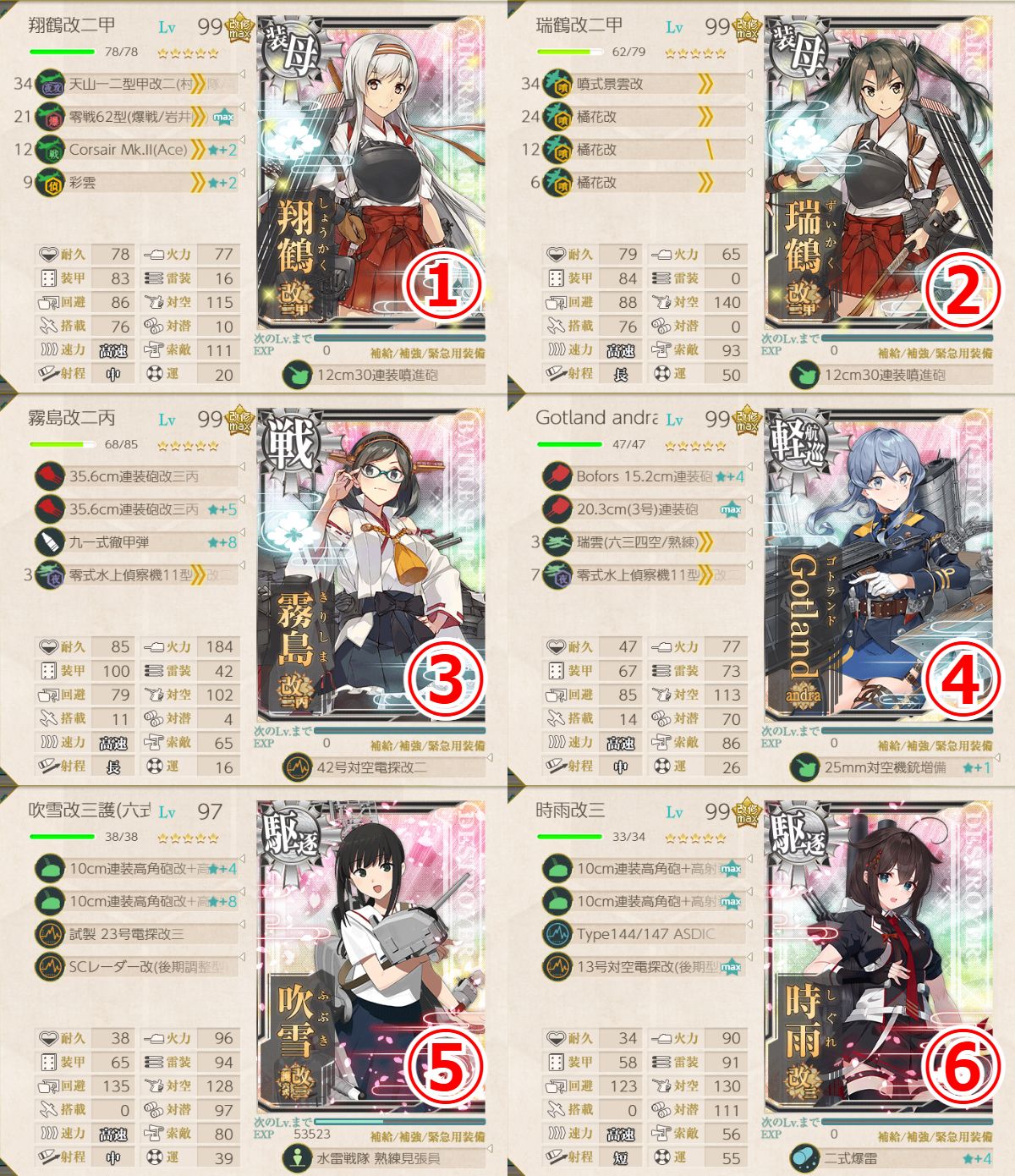 翔鶴さん、瑞鶴さんと駆逐艦さんででルート固定する編成です
