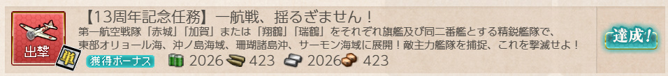 艦これ 任務 「【13周年記念任務】一航戦、揺るぎません!」【期間限定/出撃/単発】
