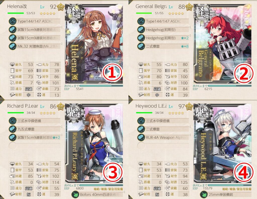 他駆逐艦2隻以上または潜水艦2隻以上を含む艦隊で