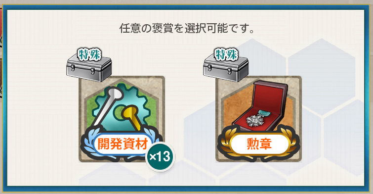 - 開発資材×13 or 勲章×1