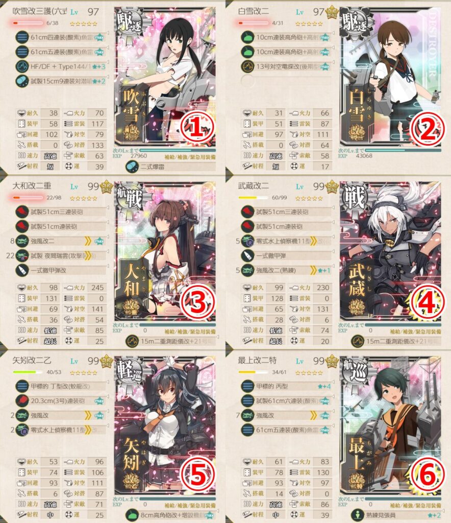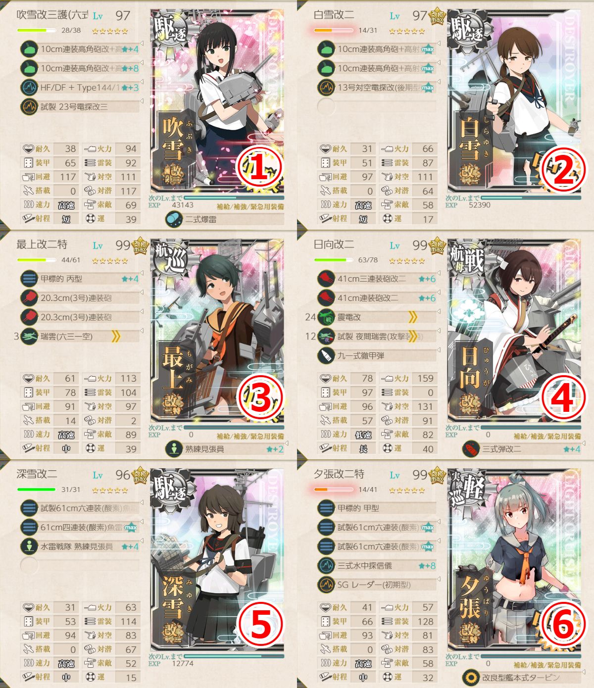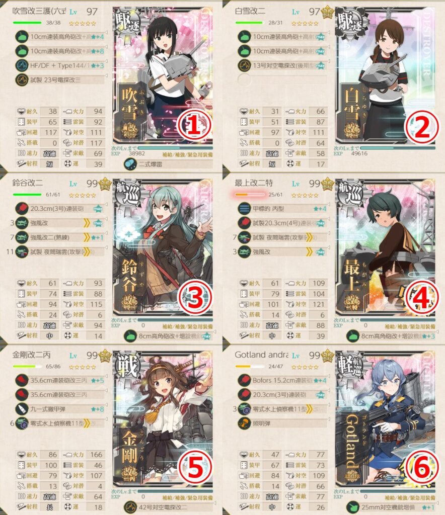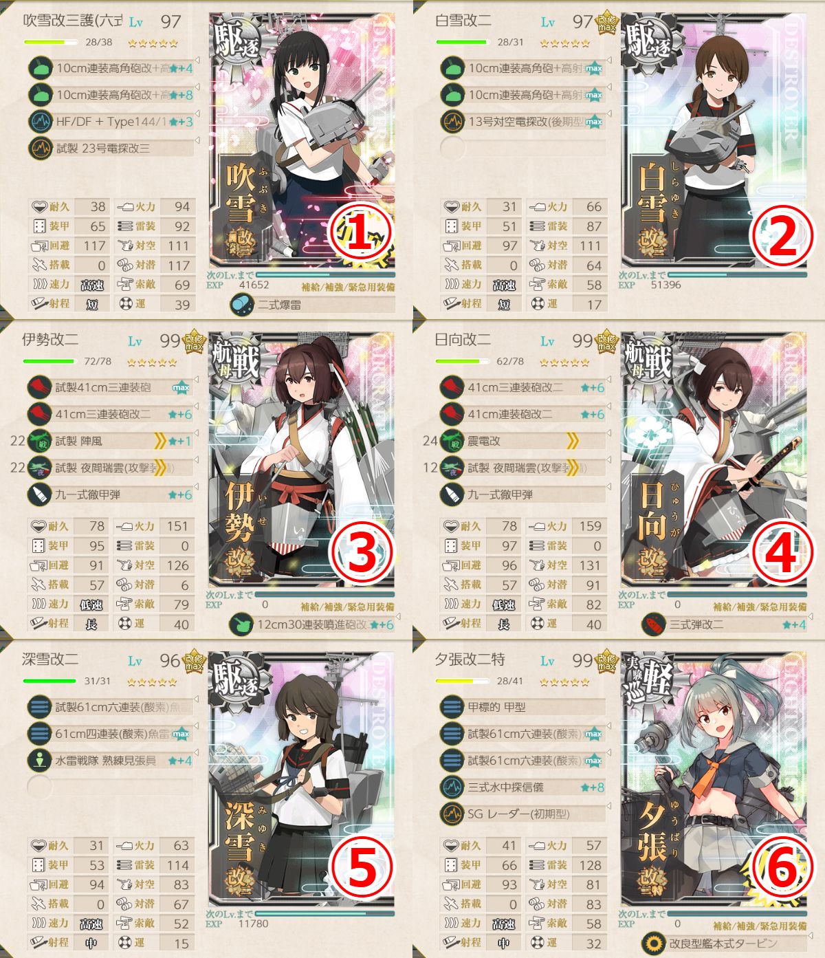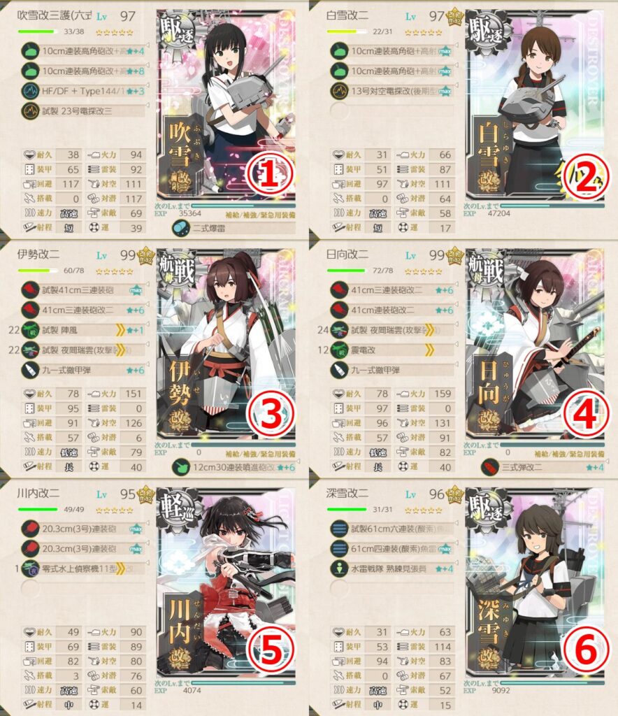いつもの攻略メンバーの駆逐艦を特Ⅰ型に入れ替えた形です