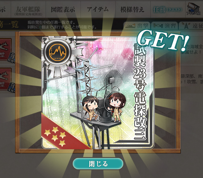 - 12.7cm単装高角砲改二★+6 or 試製23号電探改三 or 勲章×5