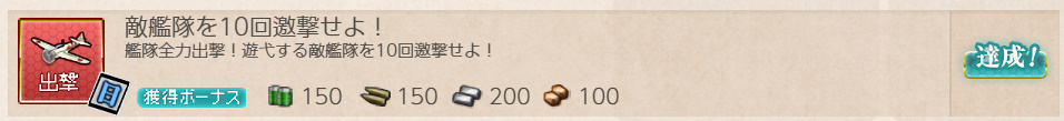 - 任務内容:海域をとわず出撃し、10回戦闘する