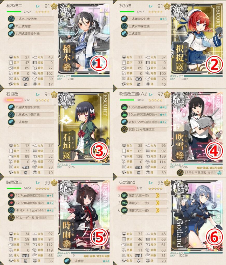 こちらは対潜のため海防艦さんたちで