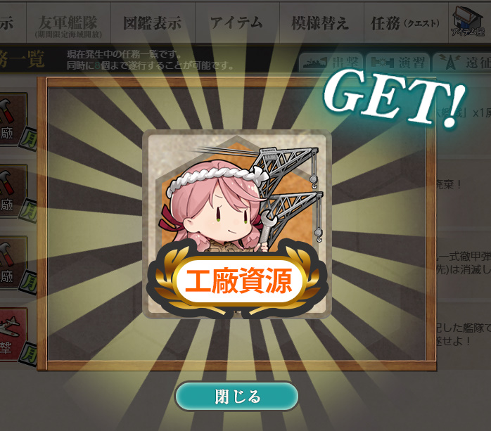 - 勲章×2 or 燃料×4000 or 工廠資源×2